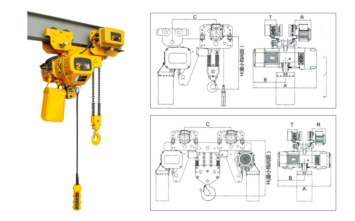 低凈空環(huán)鏈電動(dòng)葫蘆適用于廠房高度較低又對提升高度有嚴(yán)格要求的工作場所使用,尤其適用于臨時(shí)搭建的廠房內(nèi)或者在其內(nèi)需要擴(kuò)大有效起升空間的場所。低凈空環(huán)鏈電動(dòng)葫蘆由2個(gè)跑車以及一個(gè)電動(dòng)主機(jī)組合而成。